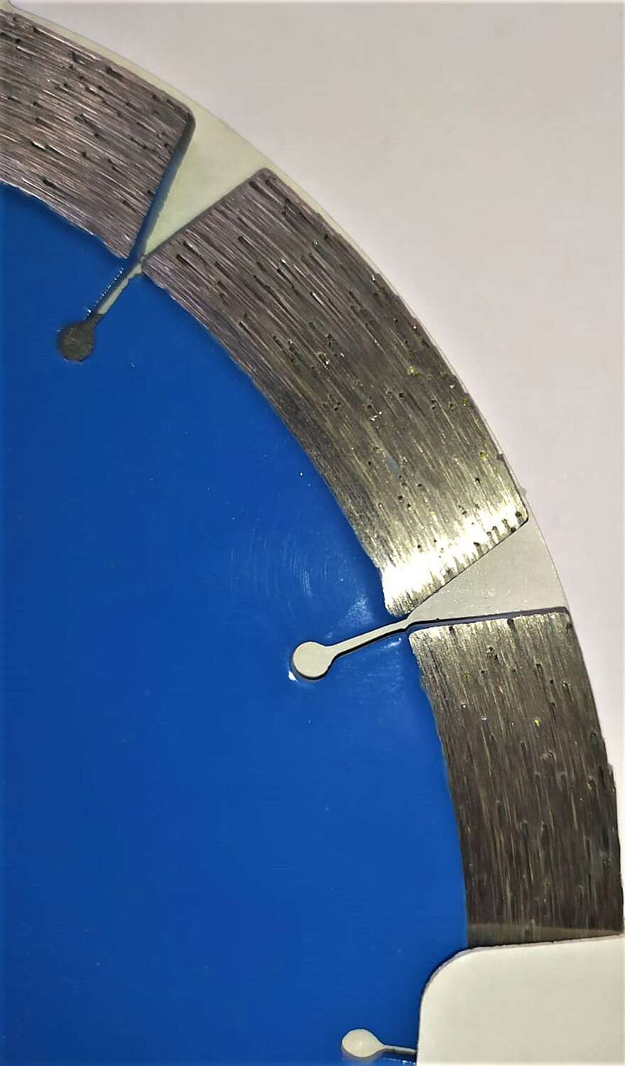 За счет увеличенного алмазного слоя, высота которого составляет 12 мм, алмазный диск позволяет работать с бетоном на достаточно большой скорости, до 0,37 метров в минуту, при этом показывает достаточно хороший ресурс, который достигает 150 пог.м. Показатели работоспособности приведены при тестировании алмазного диска 230 мм. Материал: бетон марки М400, армирование 12 мм на 1 метр погонных которое составляет 6 шт.